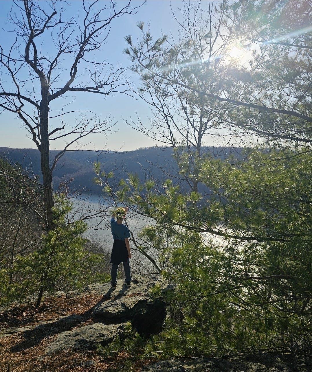 We made our way down the trail and across the boulders toward the overlook spot. “Ah, there's a young couple out there, and see? Others awaiting their turn. Let’s sit back here and eat our snacks while we wait,” I suggested.